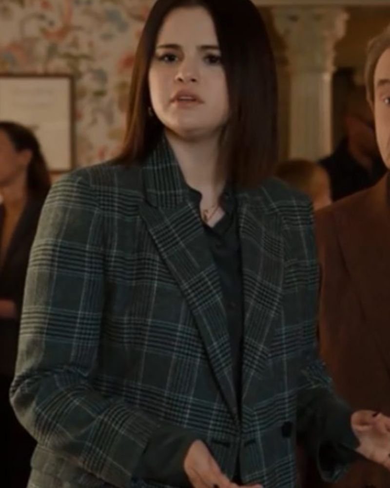 Stay warm and stylish in this Only Murders in the Building coat, made from a luxurious wool blend fabric. Inspired by Selena Gomez's character on the hit Netflix show, this green coat features a round neckline, long sleeves, and two front pockets for added convenience. It's perfect for fall nights or chilly mornings - pair it with your favorite jeans and boots for a sophisticated look that's sure to turn heads. Make a statement with this timelessly chic piece. Shop now and stay cozy all season long!