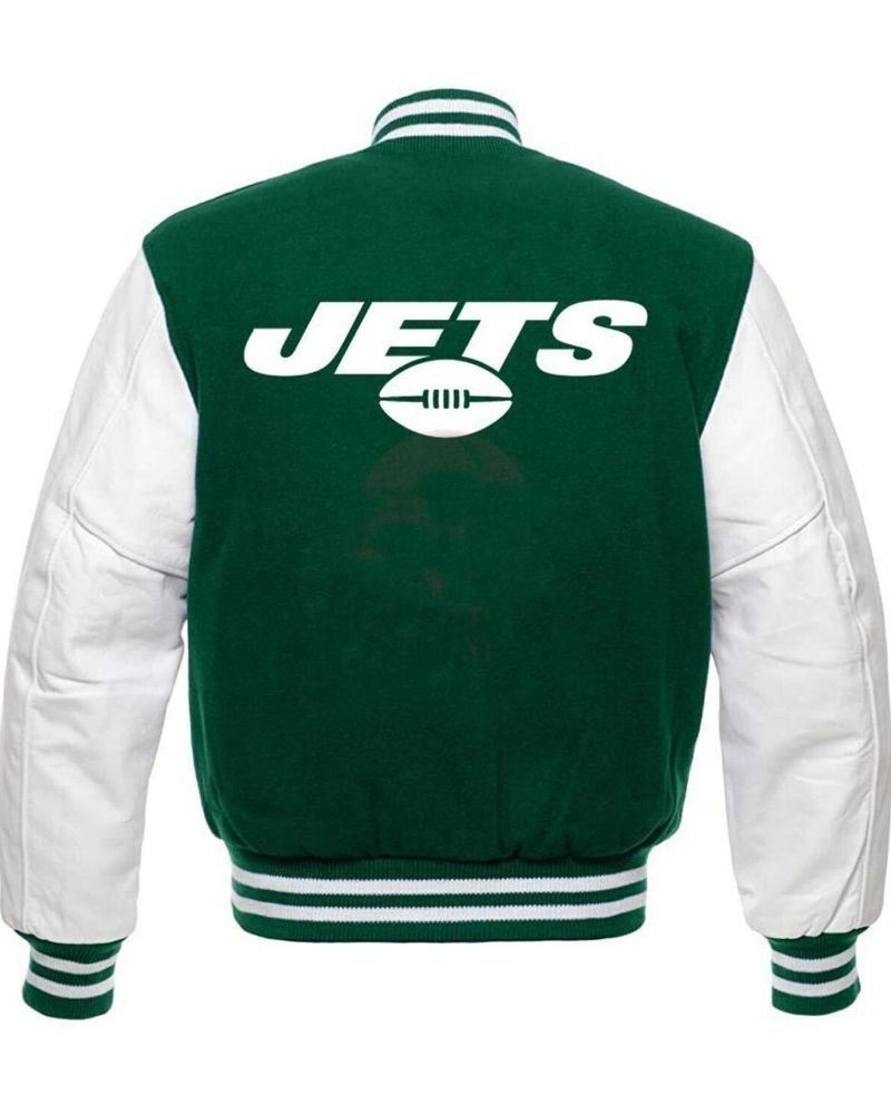 The Varsity NY Jets Green and White Jacket is a classic American baseball jacket inspired by the classic American sport. Made from a lightweight, breathable fabric, this jacket is perfect for any sports fan.